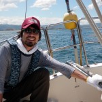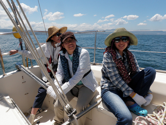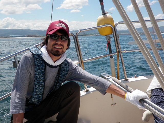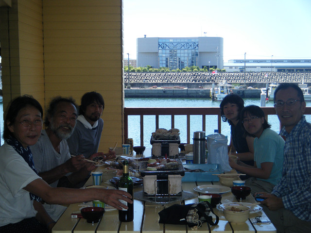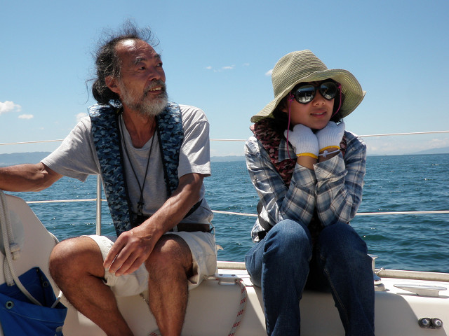 陶芸家の森岡成好さん、由利子さんのファミリーが8月6日、田尻マリーナへ来てくれました。ヨットもやっていたとは聞いていましたが、一緒に海上へ出ると、風向の変化にも実に敏感です。ヨットの狭い船内で、料理当番もつとめていたとのこと、並大抵ではできません。森岡さんの思ってもみなかった側面を知ることになった一日でした。