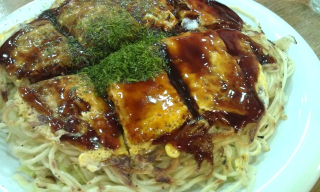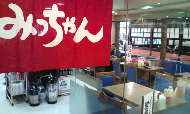お昼を食べる時間がなかったので、帰路に広島駅で、広島焼きを食べた。おいしいと評判の「みっちゃん」に立ち寄った。
