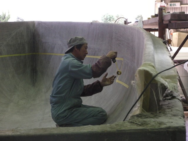 ニシエフ小浜工場へ自動車で行く。0545時に出発し、着いたのは0930時だった。Zen24のニューモデル(元信天翁24)のFRP型をチェックし、二人で手分けして修正作業を行った。造船所の人達は、我々外来者にも気安く声を掛けてくれるので気持ちが良い。アドバイスも、惜しみなくしてくれる。