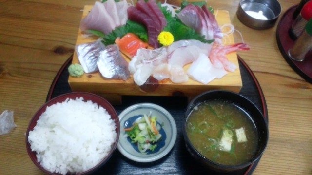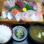 お昼休みはすぐ近くの魚市場へ行った。魚市場は土曜日のためか、お客さんが多い。食堂で刺身定食を食べる。30分ほど待たされたが、新鮮でおいしい。