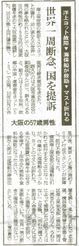 人命を救助してもらい、ヨットを八丈島まで曳航してもらった事に、十分感謝するべきではないだろうか。世界一周を断念しなければならなかった理由は、スキッパーの未熟さにあるのは明らかだ。海上保安庁に責任転嫁し、賠償を求めるのは全く理解しがたい。