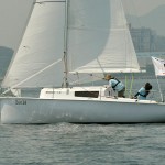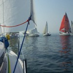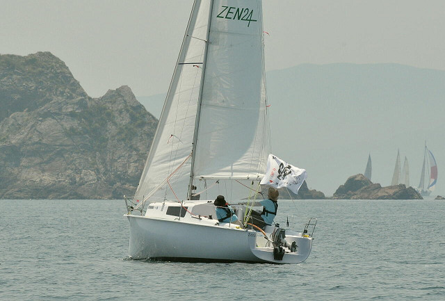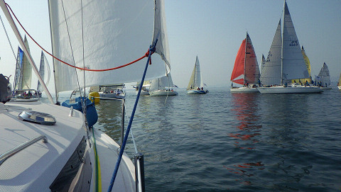 レースは東からの微風で始まる。しかも後半ほど弱くなってきた。三石に到達する前に風向が南に振れたため、小型艇はタックを繰り返している。コースは短縮されたので、フィニッシュすることはできたが、71艇中56位となった。