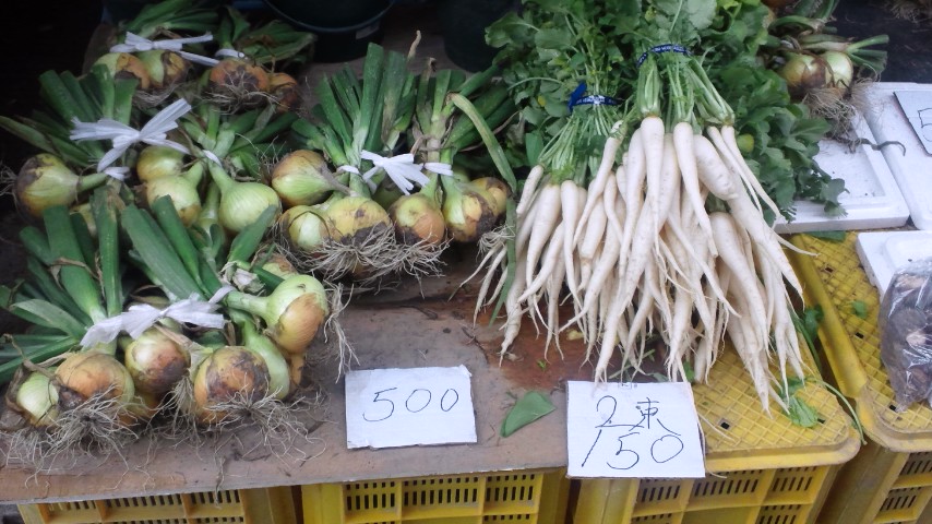 朝市へ出向くと、屋台で天然ぶりを、さばいている。こんなに大きい。しかも1本2500円と、信じられない安さだ。農家も春野菜をたくさん並べている。写真を撮っていたら、大根をくれた。5月20日は、恒例のタマネギ祭りの日だ。楽しみにしておこう。