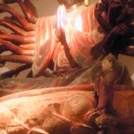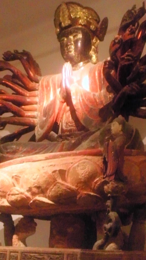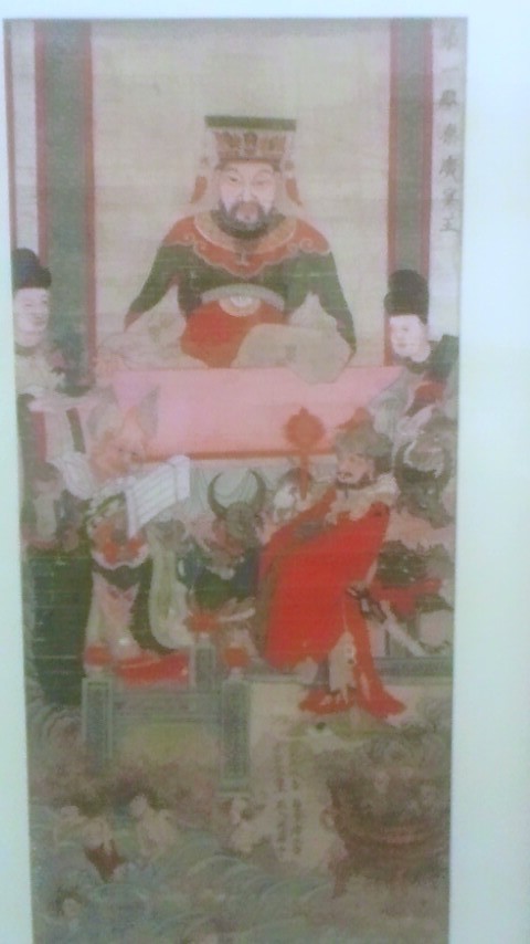 焼き物は1階に展示室がある。白磁、青磁、鉄絵、染め付け、みな本物のすごさだ。監視の人が少ないが、大丈夫かと心配する。少数民族のファッション、織物、漆器、籠、実に手の込んだ細工だ。螺鈿は沖縄から来たのだろうか。使っている貝は夜光貝ではなく、アワビだ。沖縄にも螺鈿用のアワビが、北国から輸入されていたのかもしれない。お茶道具に使いたいくらいだ。宗教画も、面白い。閻魔さんに判決を下されて、熱湯につけられる人は贅沢三昧の人だ。焼かれて犬のえさになる人もある。自分でも地獄絵を持っているが、面白いほどストーリーが似ている。