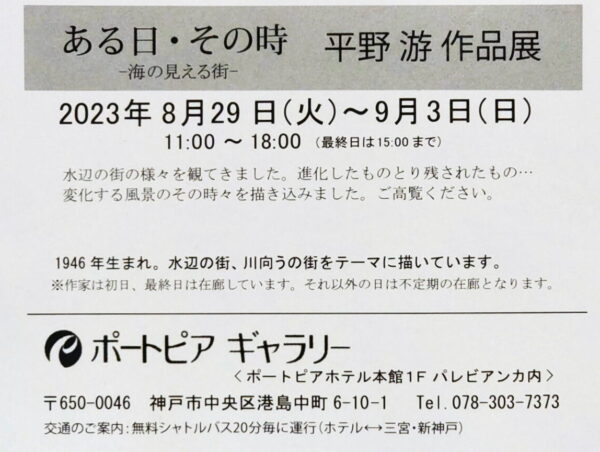8月29日から9月3日まで、神戸のポートピアホテルで、平野游さんの個展が開催されます。