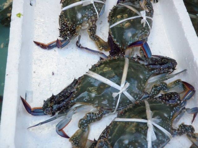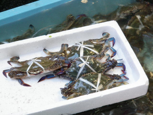 今年はワタリガニの当たり年だそうだ。田尻漁港の日曜朝市では、あちこちで売っている。しかも安い。