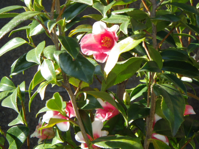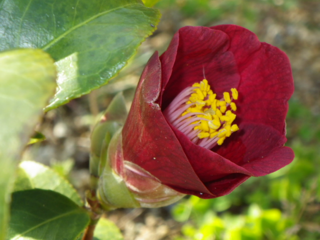 休日の一日、庭の雑草抜きをする。雑草に交じり、草花の芽も土の中から芽吹いている。胡蝶侘助はもう最後の花を咲かせている。紺侘助が、ツバキでは遅く咲くようだ。濃赤色の花びらのなかに、赤色の花心がのぞいている。花が終わった梅の若葉の間には、もう小さな梅の実が鈴なりだ。庭にはすっかり春が訪れている。