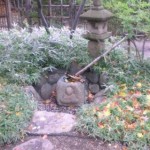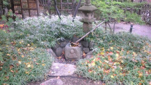 公園内の茶室を見学する。遠州好みの八窓庵だ。窓の外側はガラスで覆ってあるので、席中を覗くことができる。ガラスは風と寒さを防ぐ工夫でもあろう。つくばいの周囲は、2種のササだけを植えて、あっさりとしている。露地全体も植え込みが少なく、おおらかだ。春から秋は、気持ちの良い席だろうと、想像する。