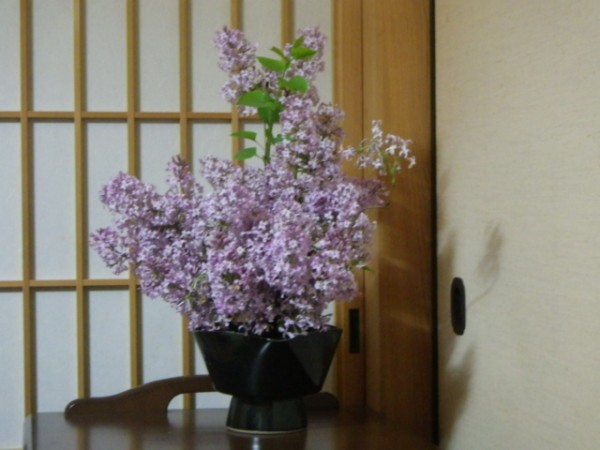 慈眼院の床に掛かる軸は玉林院洞雲和尚筆、花は籠に入った初秋の…