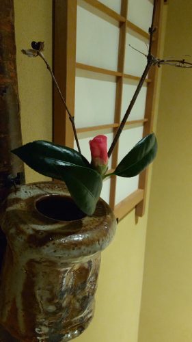 竹一重切りに胡蝶侘助と白山吹の実