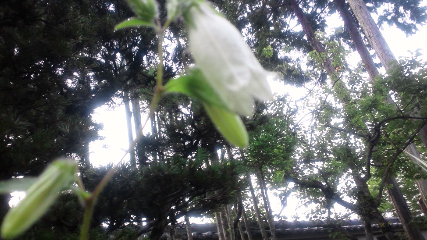 梅雨の雨が上がり、慈眼院の庭はみずみずしく匂っている。白色の蛍袋が群生して、下に向いて慎ましく咲いている。梅雨時に開く深山蓮華は、この季節の楽しみだ。しかしまだつぼみは堅い。