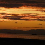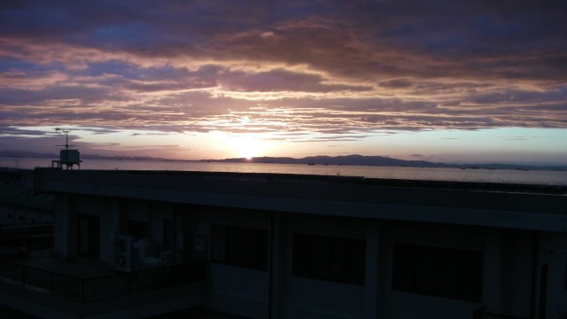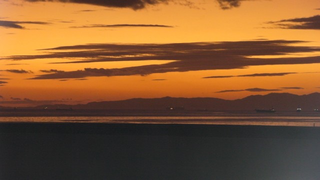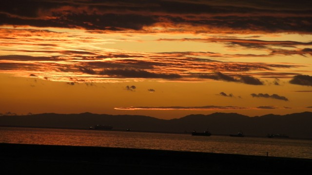 昨日大阪湾の泉南沖合には、50隻くらいの本船がアンカリングして、台風6号を避泊していた。 雨のせいか視界が広がり、淡路島までくっきりと見える。夕焼けは最高だった。生きているだけで丸儲けとは、このような瞬間を指すのだろう。