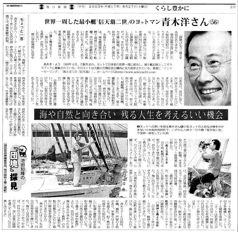 | 2006/08/27 | 毎日新聞 | 池田友隆の「団塊」探見・世界一周した青木洋さん |