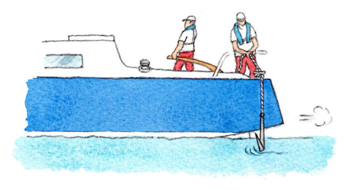 - アンカーロープは、水面に浮いてはいけないので、重い材質のロープを選ぶ。