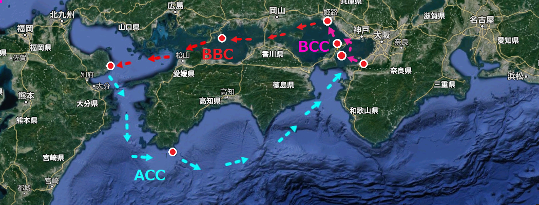 - そのための特別プログラムとして、BCC、BBCおよびACCの、長距離航海コースを設定致しました。今回のプログラムは、瀬戸内海の長距離航海を3コースに分けました。単一コースだけでも、連続でも参加可能です。連続コースでお申込みいただくと、各コースが5%割引料金となります。