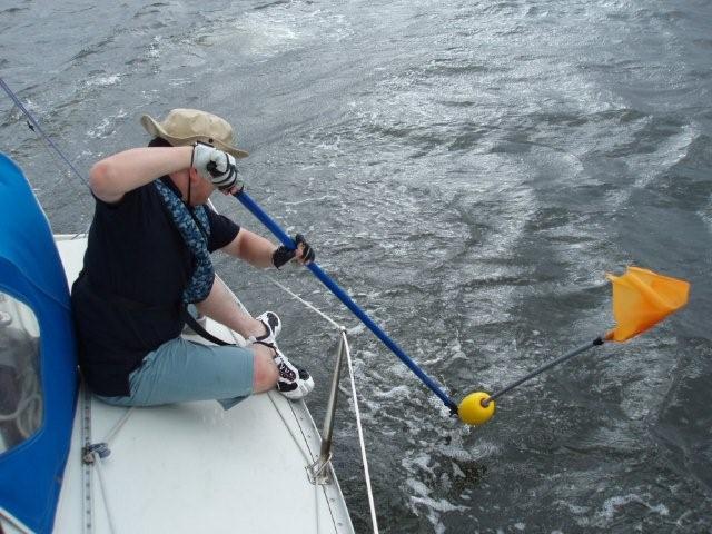 広いビジターバースを使って、離着岸練習を行いました。午後からは帆走実習と落水者救助実習を行いました。