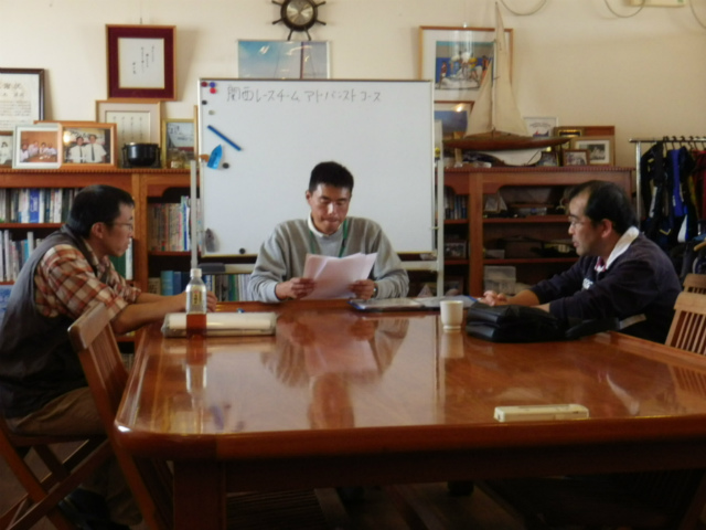 まずは、参加者の方の自己紹介。と言っても今回のコースの参加者の方は、ベーシックレースコースからステップアップされた方ばかりなので、自己紹介前から楽しそうに談笑されていました。