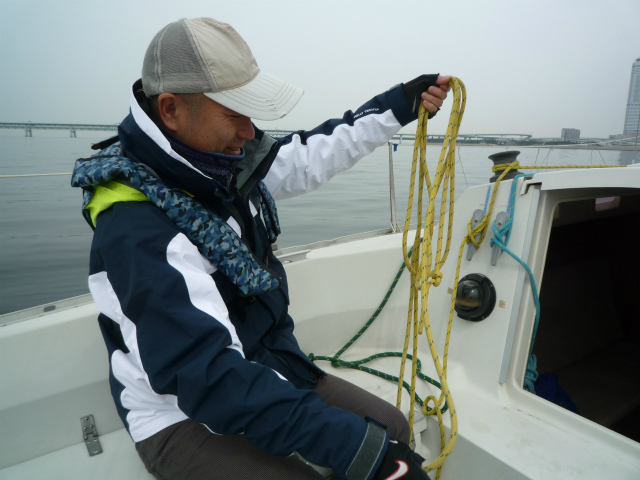 天候があまり良くなかったのですが、お一人でのご受講だったので、たっぷりセーリング実習を行いました。