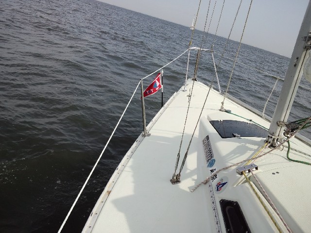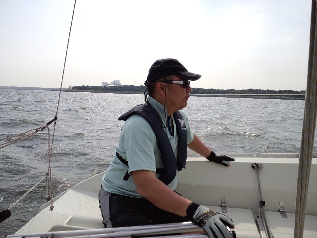 午前中は低体温症と8の字救助法の解説の座学を行いました。その後、艇に移動し出港準備を済ませて出港。各風位に艇を向けて見かけの風の変化を確認し、ヘディングアップ、ヘディングダウン、常に風を意識して操船練習を行いました。午後からは落水者救助法の練習を行いました。受講生お一人のためたっぷり練習できました。