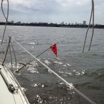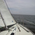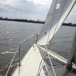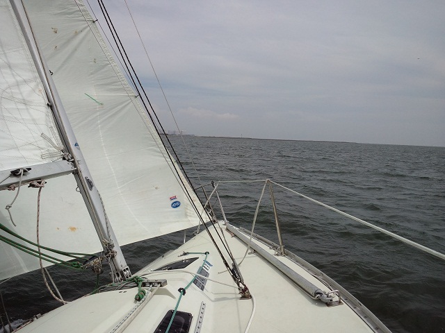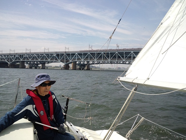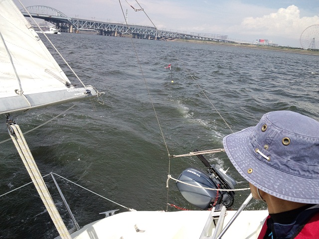 8の字救助法をしてみましたが、ウェザーヘルムが強く落水直後にヘディングダウンができません、一但ジブチェンジでレギュラージブに変更して再開、両タック交互にそれぞれクロスホールドで落水した想定で練習、風がさらに強まりメインはワンポイントリーフにして続行。最後は応用としてアビームから落水した想定で練習。落水者の風上でヒーブツーで艇を停めることが出来ず再アプローチをくり返す場面もありましたが、立て直しや再アプローチでの的確な艇のコントロールは豊富なセーリング経験によるものです。帰港後の卒業テストでは惜しくも1問間違えただけの高得点で合格されました。