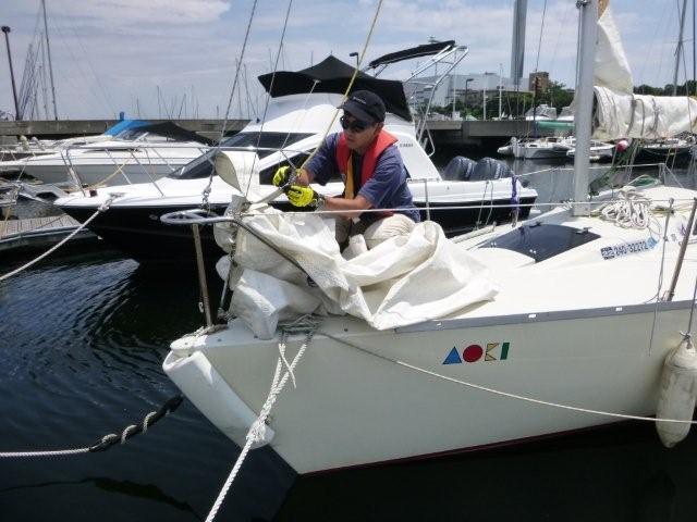 前期をご受講頂いたときは雨でしたが、今回は晴れ。荒川河口は風の通り道のようで、縮帆作業も実践にならざるを得ません。即実践で大変だったと思いますが、今後のヨットライフに役立てて頂けそうです。