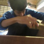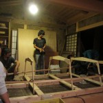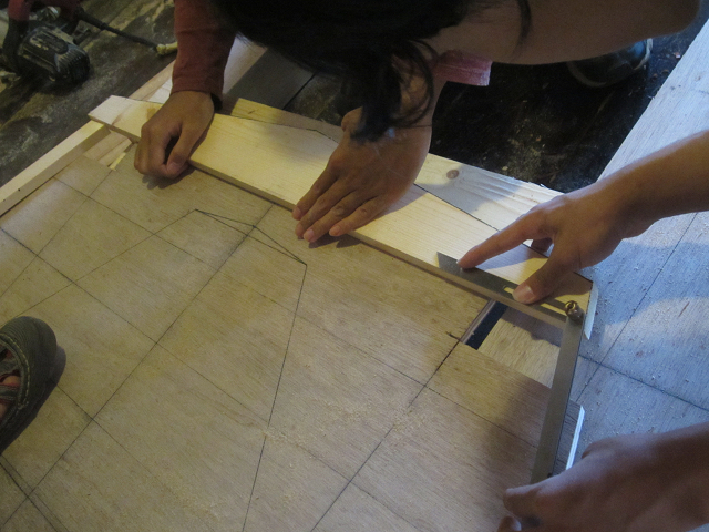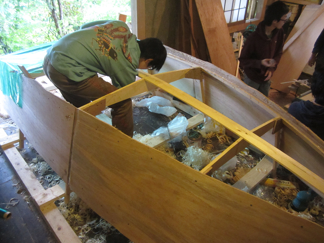 ヨット制作チームの生徒たちは10人くらいだ。ベニア板製の小型ヨットZen11の制作を、一から作り始めたのが、2013年の9月だ。図面から原図をベニア板へ起こして、その原図に合わせてフレームを組立てる。次に船台を作り、指定位置にフレームを立てると、ようやくヨットらしい外観が現れてくる。ここまで30時間ほどかかったとのことだ。生徒も先生も、よくめげずに頑張ってきたものだ。