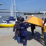 ライフジャケットの使用法や、チンしたときの対応を勉強した後、いよいよ海へ乗り出す。伴走するボートから交代でヨットに乗り移って、関西空港の近くまでセーリングを実習する。風は微風で気持ちよく快走する。最高の一日だ。