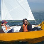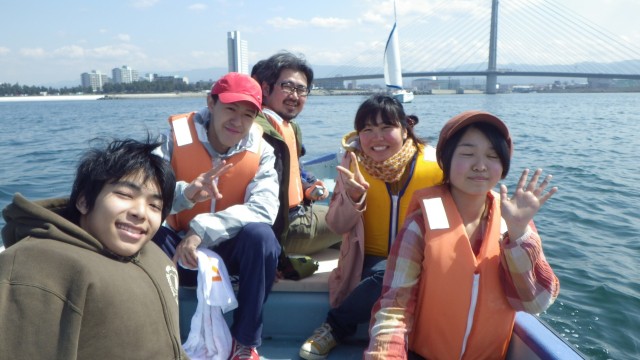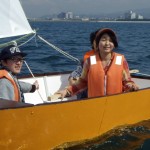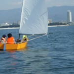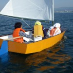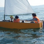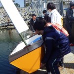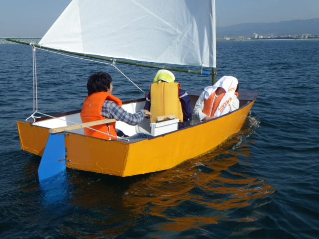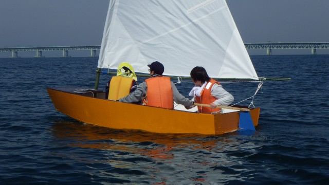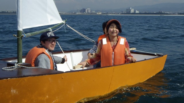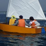 ディンギーを自作した高校生グループに、セーリング実習1
