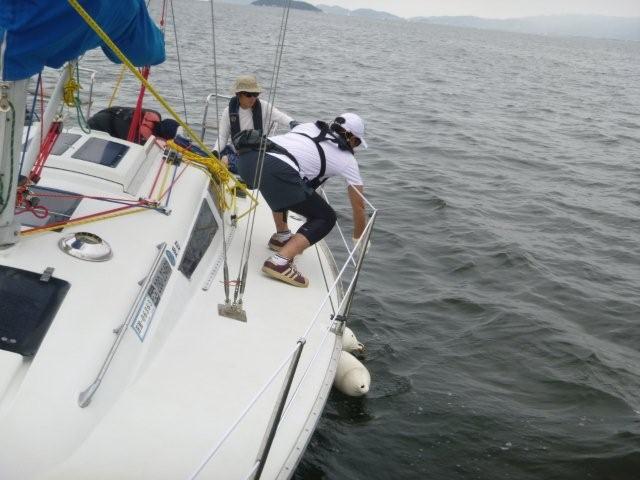 ラッキーにも、実技教習中は雨に降られませんでした。 強くない風だと思っていたのですが、いざティラーを握ると大変ですね。 でも、楽しかったです。