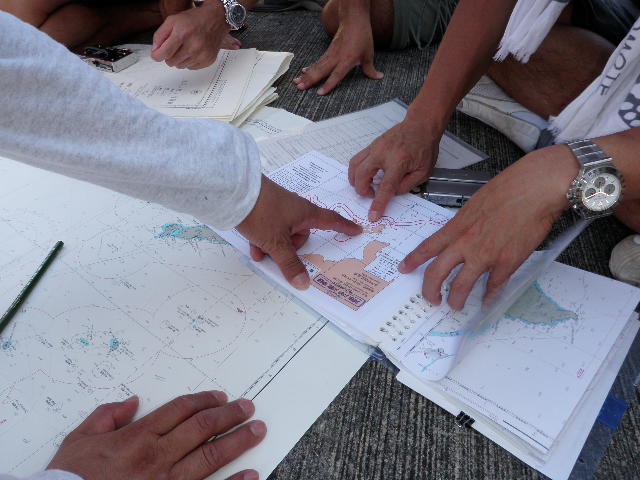 艇と個人の安全装備を、全員で再確認する。奄美大島へ向かうには、不利な状況を理解した上での出港だ。不安があるのは、皆同じだ。しかし無事に奄美大島へ入港する方法を考え出していかねばならない。さあ、勇気と努力でやっていこう。