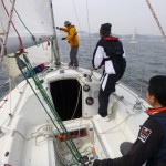 1. デッキワーク、セールトリム、ヘルムスなどのヨット上のポジションを、クルーとして交互に担当します。ポジションを順番に練習して、全体の動きが理解できるよう、トレーニングを行います。