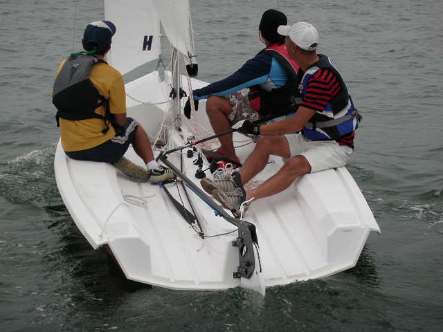 アビーム、クロスホールド、クォーターリーの海上セーリング、タッキング、ジャイビングの実習