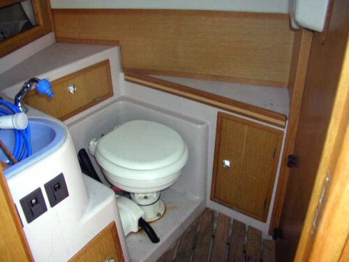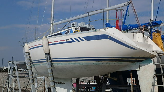- トレーニング使用艇はヤマハ34です。個室ヘッドルームに電動トイレを装備しています。