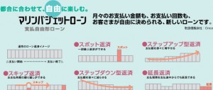 提携ローン会社、オリコまたはアプラスの低金利マリン・バジェットローンが、ご利用いただけます。月々のお支払い金額も、お支払い回数も自由に変えられる新しいマリンローンです。