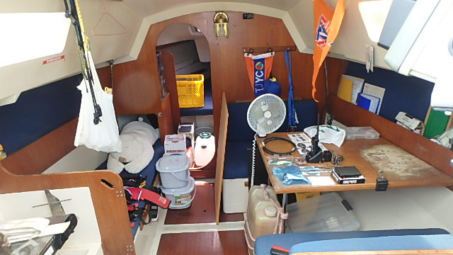 • マリントイレ、ギャレーセット、ジンバル、キャビンテーブル、メインセールカバー、航海灯セット、GPS、オートパイロット、ステアリングコンパス、レイジージャック、システムバング、メインシートトラベラー、バックステーアジャスター、スイミングラダー