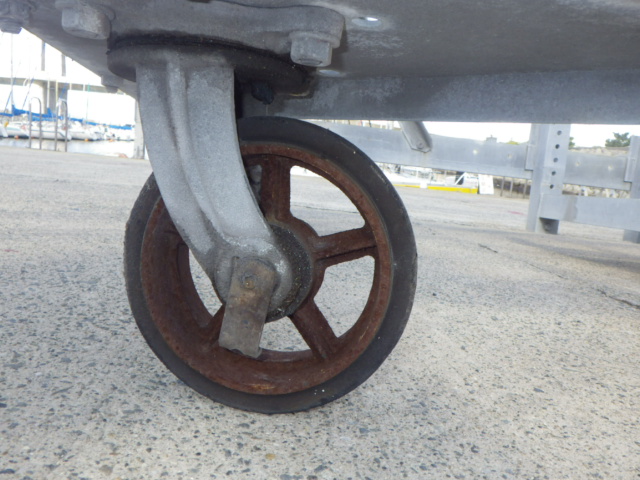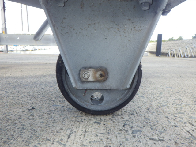 中古船台、程度良好です。錆の出ないどぶ漬亜鉛メッキ鋼製のフレーム、キール受けは調整式で艇のキール深さに合わせることが出来ます。現状有姿渡しです。