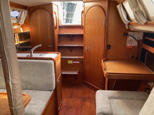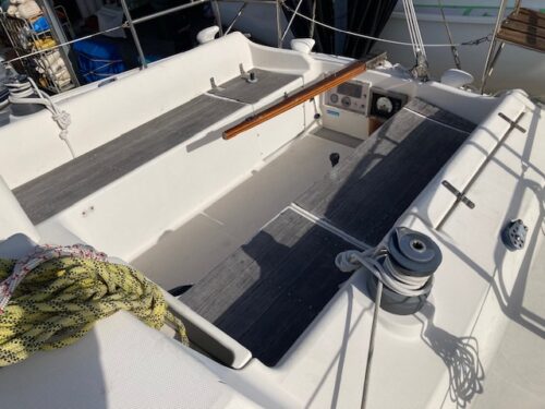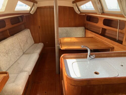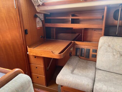 ジブファーラー、フルバテンメインセール、ローラースライダー付、個室マリントイレ、スイミングラダー、ハリヤード及びシート用セルフテーリングウインチ、大きなオーナーズベンチを両舷に装備。 - お問い合わせはこちらをクリックして下さい。
