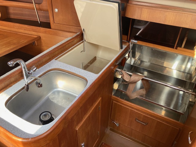 ジブファーラー、フルバテンメインセール、ローラースライダー付、個室マリントイレ、スイミングラダー、ハリヤード及びシート用セルフテーリングウインチ、大きなオーナーズベンチを両舷に装備。 - お問い合わせはこちらをクリックして下さい。
