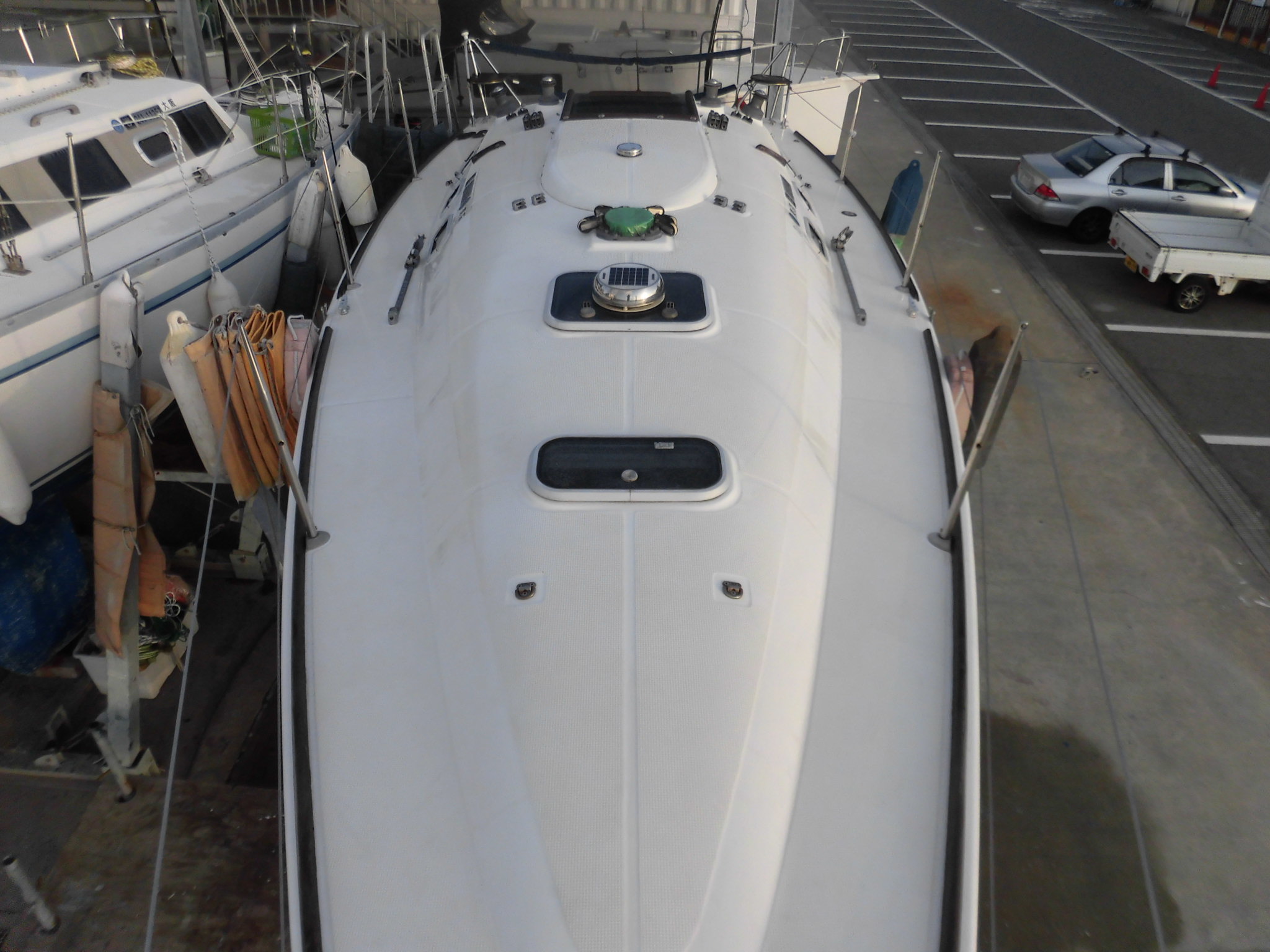 - 艇の特徴と装備・・・・程度良好、広く明るいキャビンです。乗りやすいクルージング艇。セルフテーリングウィンチやスタックパックメインなどの装備がついたシングルハンド仕様なので、少人数で操船可能