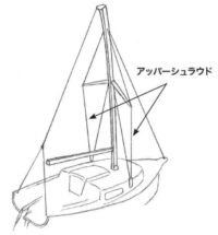 マストを支えるために、マストの上部から取り、横方向へ渡してデッキに固定したワイヤロープ。