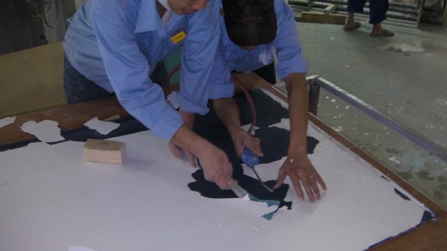 新しい製品なので、職人は何でも前向きに質問してくる。自ら工作方法を編み出して取り組むが、うまくいかないときは見本を示す。そのタイミングが大切だ。