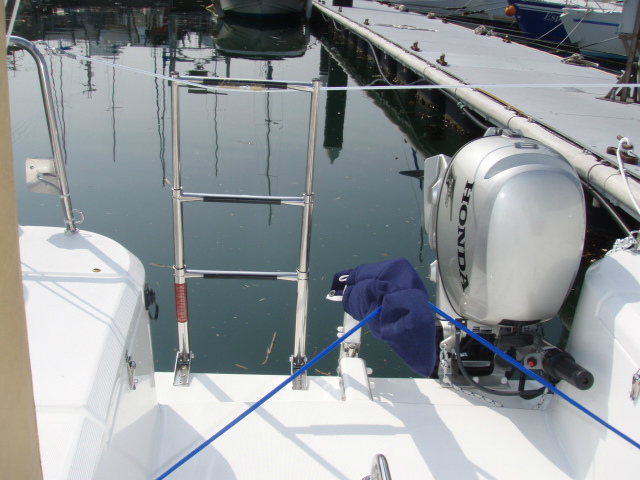 艇から水面へ降り易いように、トランサムへ設置する折りたたみ式はしごです。