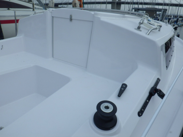 新しいZen24は、スケグラダーに代えて、バランスラダーに変更しました。ラダーの断面形状は、NACA6000系の翼型を採用したので、低速域での失速特性に優れています。波浪中でも、リーショアーと戦うときでも、舵効きを確保できます。 またデッキのモールド(型)を新しく作り、コクピット高さを上げたので、前方視界が改善されました。ウインチ台座の設置や、防水スイッチパネルの採用など、改善箇所は12カ所に及びます。